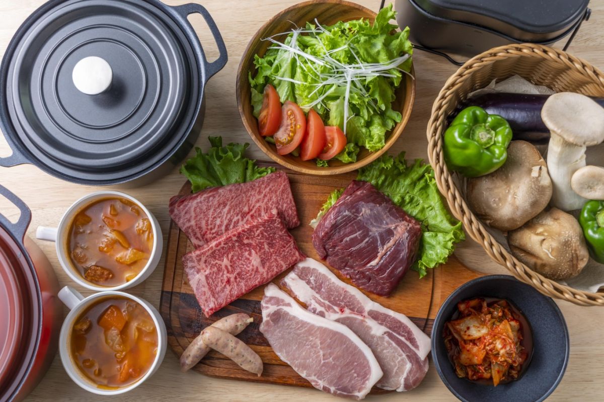 夕食は、鳥取を代表する鳥取和牛・季節の野菜などを使用したグランピングBBQがいただけます。鳥取和牛は、5年に1度開催される和牛の品評会「全国和牛能力共進会」で肉質日本一を獲得して以来、めきめきと知名度を上げている鳥取県のブランド牛です。うま味成分であるオレイン酸の含有率が高く、赤身と脂のバランスが絶妙で、とろけるような繊細な舌触りが特徴です。BBQメニューはほかにも、鳥取県産の梨果汁を使った特製カレーや、飯盒で焚くご飯も堪能できます。好きな食材を持ち込んでオリジナルBBQも楽しむことができますよ。