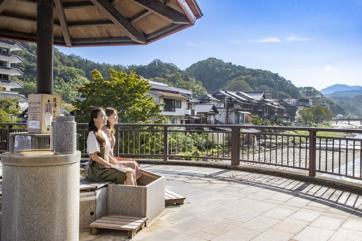 旅の最後にぜひ訪れたいのが、世界有数のラジウム泉を誇る三朝温泉。三朝の湯は、世界屈指のラジウム含有量を誇り、体の免疫力を高め、新陳代謝が活発になる効果があるとされています。温泉街の中心を流れる三徳川沿いに宿や商店などが立ち並び、ノスタルジックな雰囲気を楽しめます。三朝橋のたもとには名物露天風呂の河原風呂や足湯も2カ所あり、浴衣姿で巡るのもおすすめですよ。