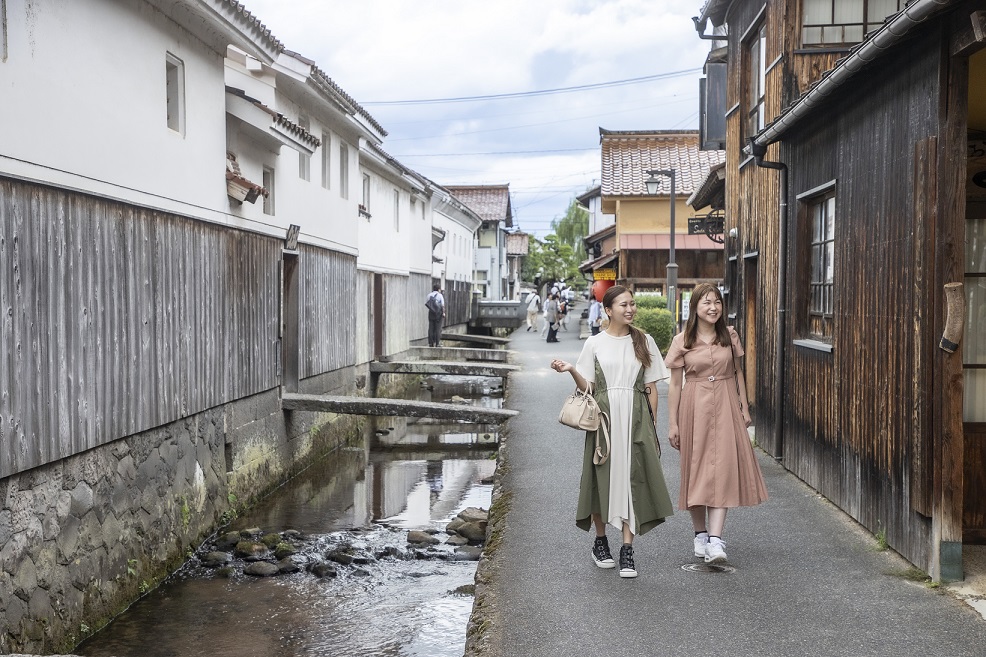 白壁土蔵群内には情緒あふれるたくさんのフォトスポットがありますが、特に玉川に架けられた石橋や、赤瓦に白い漆喰壁が見られる風情のある町並みでの撮影がおすすめ!倉吉の伝統工芸「倉吉絣」の着物や浴衣をレンタルして白壁土蔵群の町並みをそぞろ歩くのも楽しそうですね。