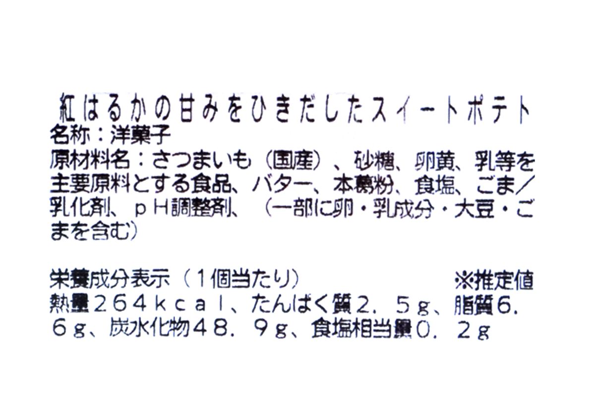 “紅はるか”はさつまいものなかでも、しっとりとしていて、糖度の高さが特徴の品種です。このスイートポテトは、紅はるかの甘さを最大限に引き出したペーストを、全体の60%使用しています。