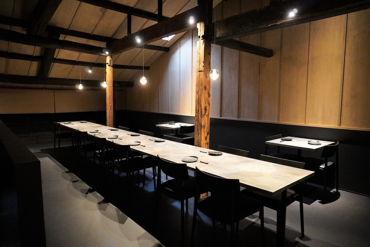 振り返ると日常の外の光が、ほんのり。とても日本的で、同時にとてもモダン。古くて新しいおしゃれな空間に魅せられます。「次の日常へ」というのが、お店のコンセプト。日常と非日常が入り混じった空間から、また日常に戻っていくときには、世界の見え方が変わるかもしれません。