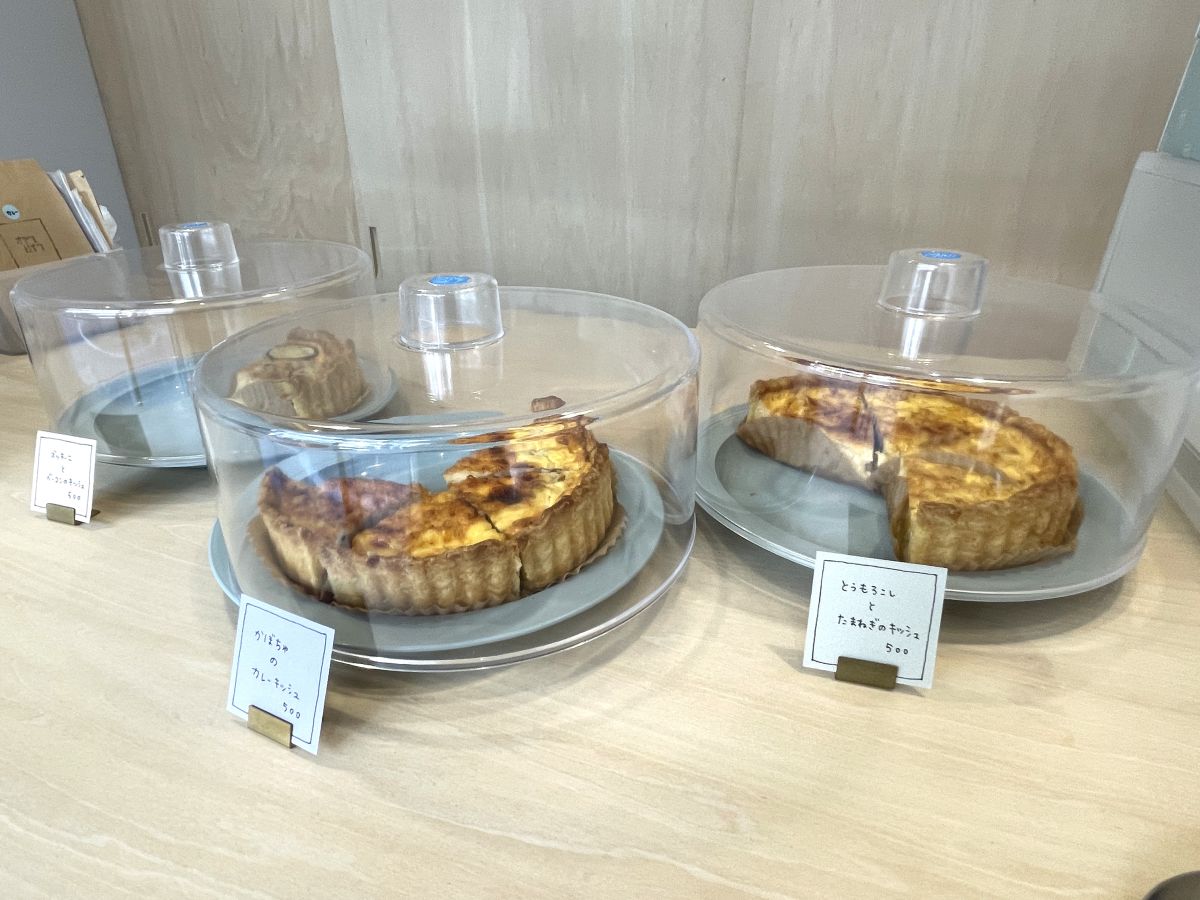 カウンターやショーケースには、毎日焼かれるチーズケーキやキッシュが並びます。一週間前に問い合わせすればホールサイズで購入することも可能です。