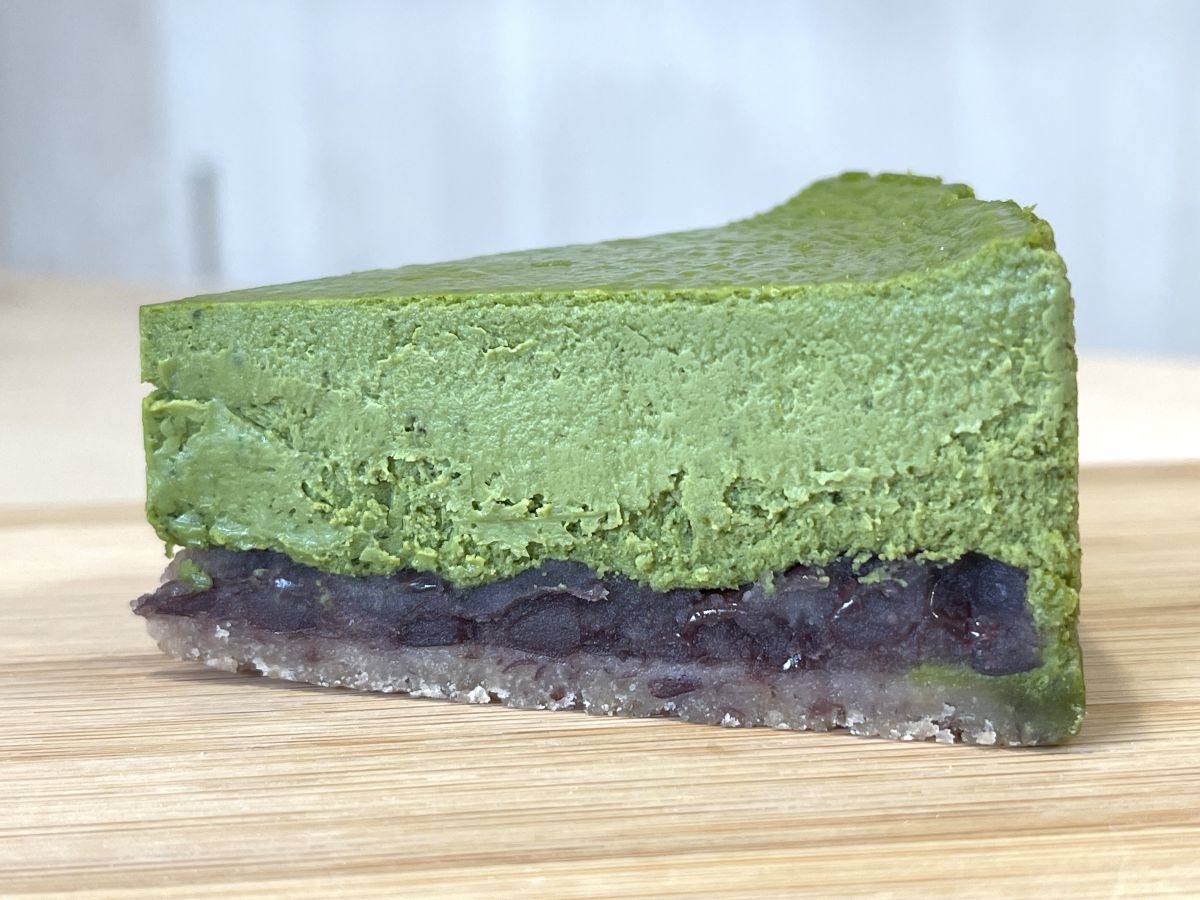 和スイーツ好きにおすすめなのが、美しい緑色が目を引く「抹茶とあんこ」。チーズと抹茶が香り立ち、上品な抹茶の味わいとあんこの甘さが口いっぱいに広がります。あんこに使われている塩気がやさしい甘さを引き立ててくれ、隠し味のホワイトチョコレートが味に深みを演出し、チーズケーキマニアも唸らせる逸品となっています。