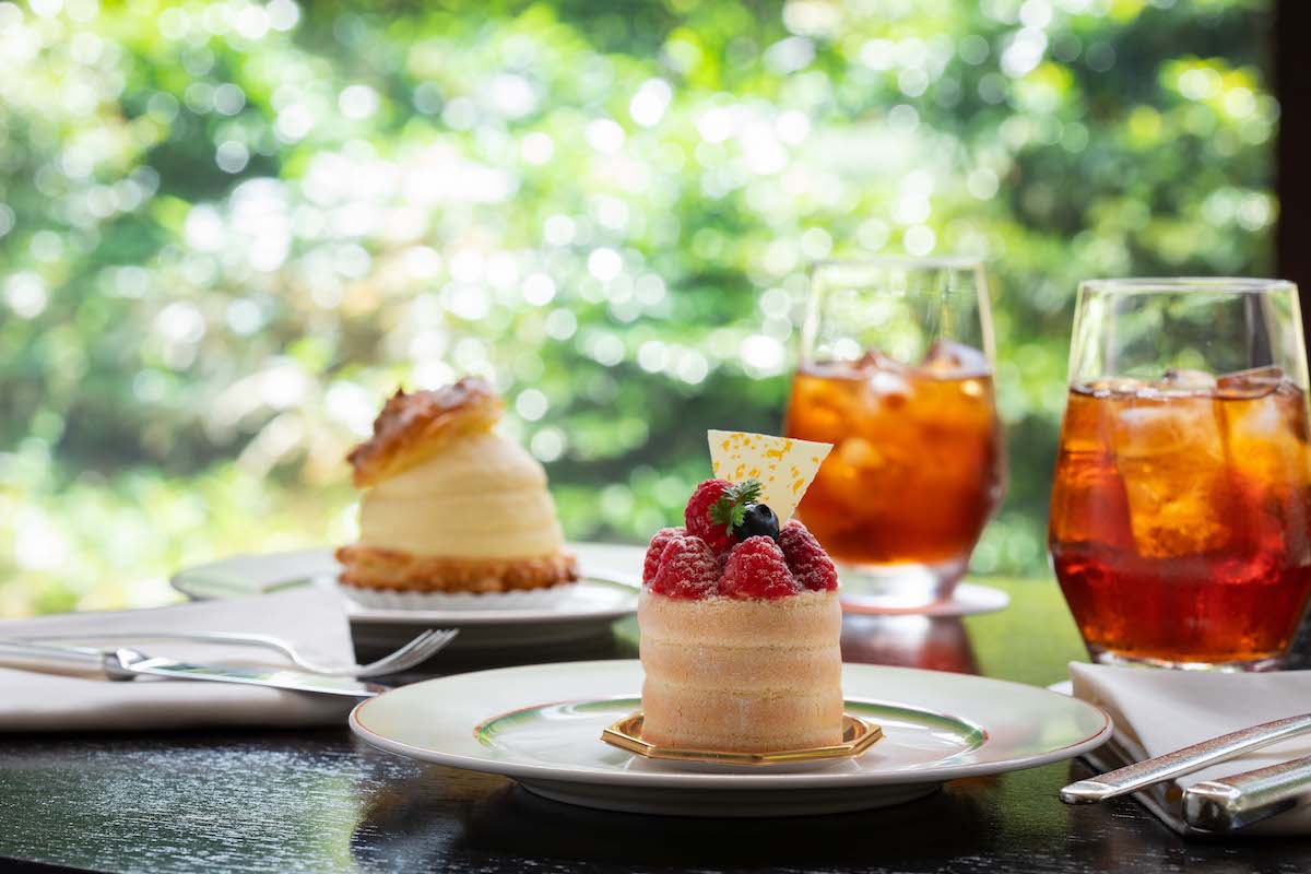 ケーキセットはふたつのプランから選べます。「オリジナルケーキセット」2200円は、ケーキを8種類からひとつとドリンクをアフタヌーンティーと同じ30種類の「ティーセレクション」からひとつ選択。「ケーキセット〜デュオ〜」2700円では、同じメニューからケーキを2品、ドリンクを1品楽しめます。