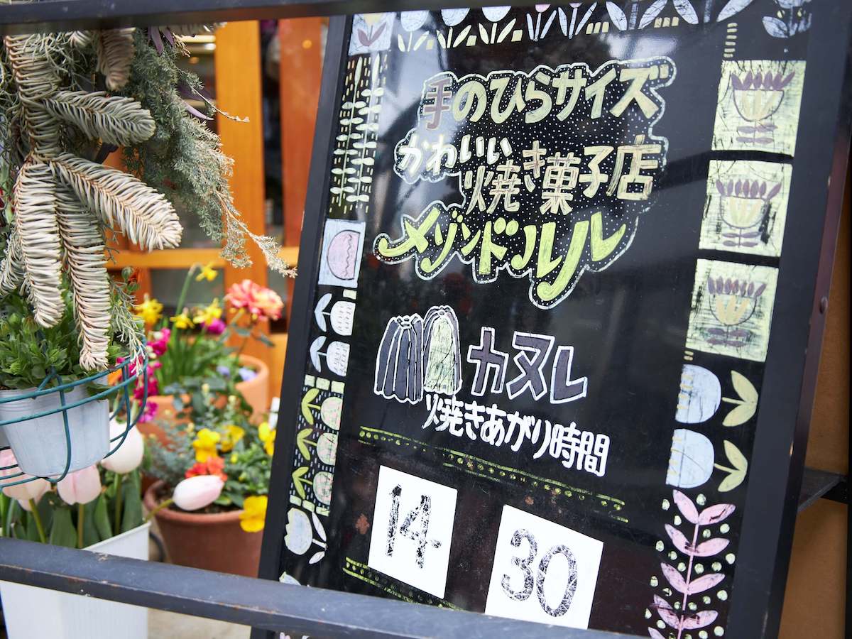 焼きたての温かいカヌレを求めて、焼き上がり時間の少し前からお店の前には行列ができます。平日は朝イチと午後の2回(土・日曜、祝日は1日3回)、店頭にある焼き上がりのボードを目安にして、足を運んでみてはいかがでしょうか。