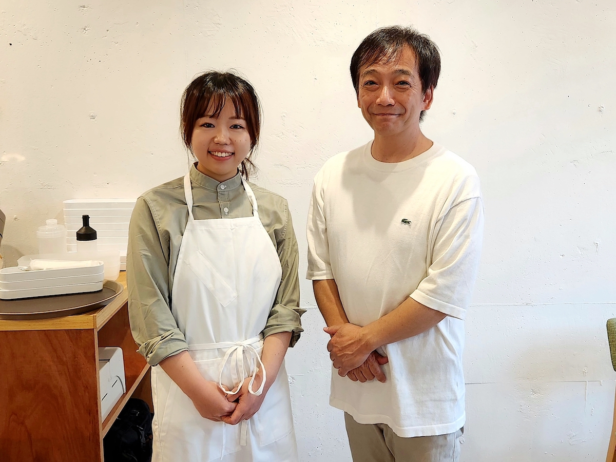 ほわん店主の飯野さん(写真左)と、開店祝いに駆けつけた「茶香」店主の中村さん