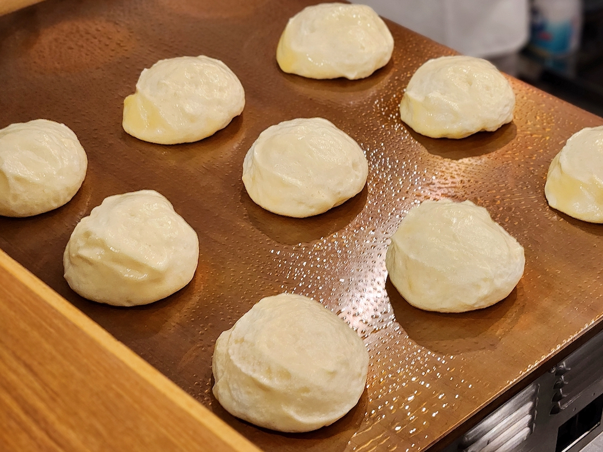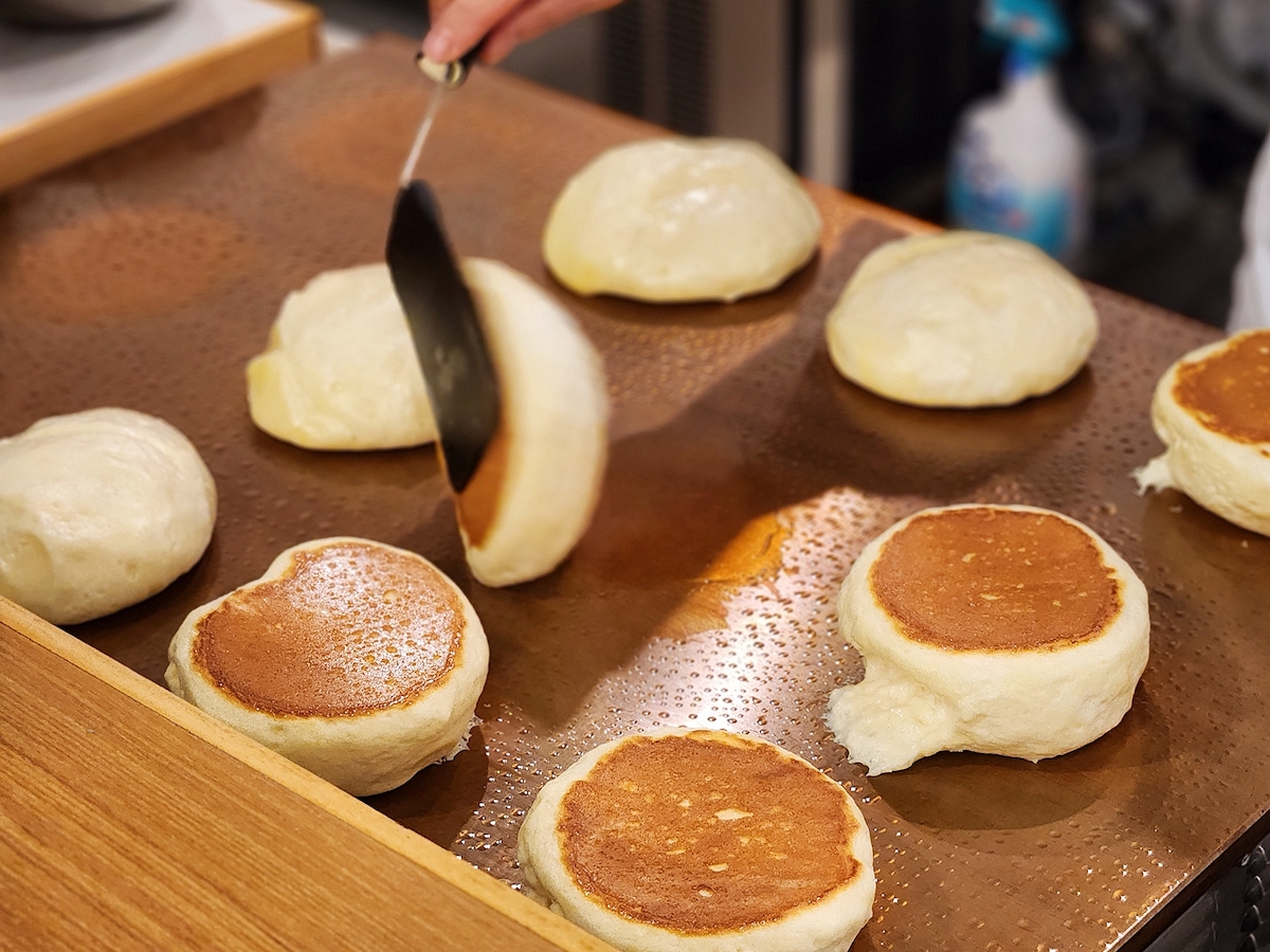 銅板は、熱伝導率がよく、鉄やホットプレートなどよりも温度変化を抑えながら均一に焼き上げることができるので、中がしっとりのまま綺麗な焼き色で仕上がります。