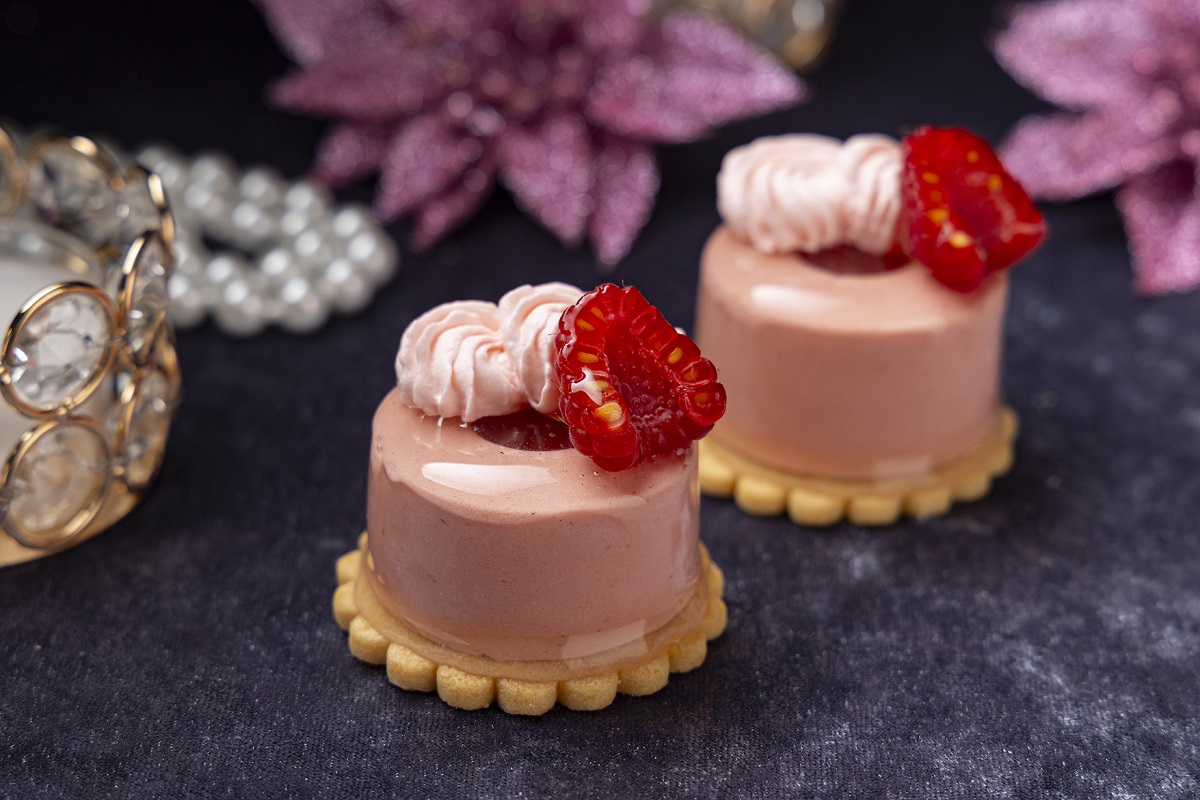 スイーツは濃厚でコクのあるイチゴのバタークリームとホワイトチョコレートのガナッシュが絶妙なハーモニーを奏でる「いちごとミルクチョコレートのオペラ」、中から流れ出るラズベリーソースがマロンクリームのムースの甘さに酸味をプラスし、口に運ぶとラズベリーがふわっと香る「ラズベリーとマロンのムース」など。