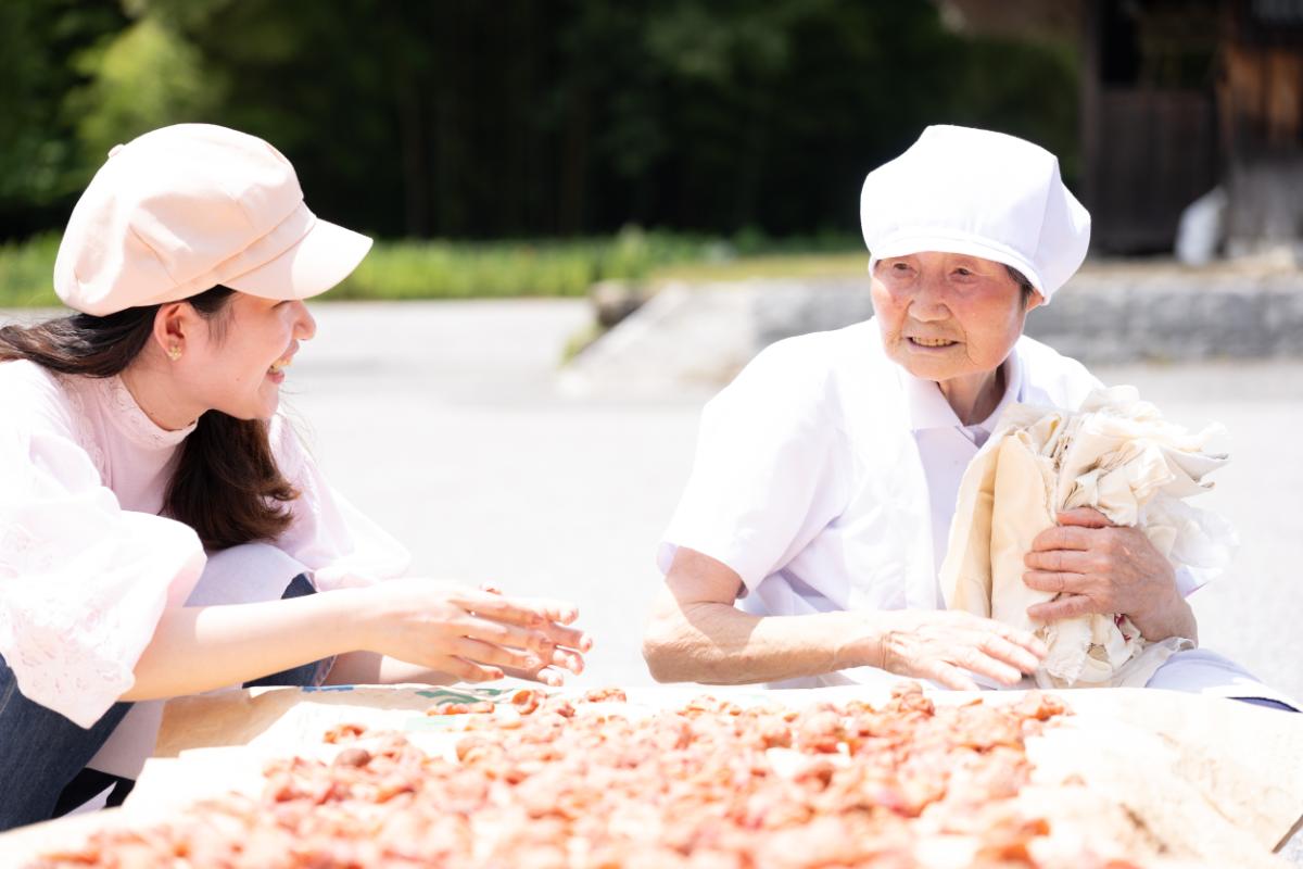 梅干しは、雪深い冬の保存食として重宝され、今から50年ほど前、「奥伊吹スキー場(現:グランスノー奥伊吹)」の建設に伴って20軒以上の民宿が建てられた時も宿泊者の食事として喜ばれました。現在、当時の民宿は残っていませんが、そこで働いていた女性たちが今もなお、地元で元気に活動して、訪れる観光客を温かく迎え入れています。