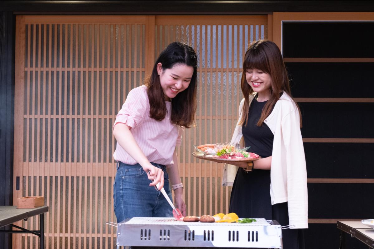 「そよも」での夕食は、バーベキュー、地鶏鍋の2種類。今回は大自然の空気を感じながら贅沢な時間が過ごせる「近江牛と飛騨牛の食べくらべBBQ」をチョイスしました。