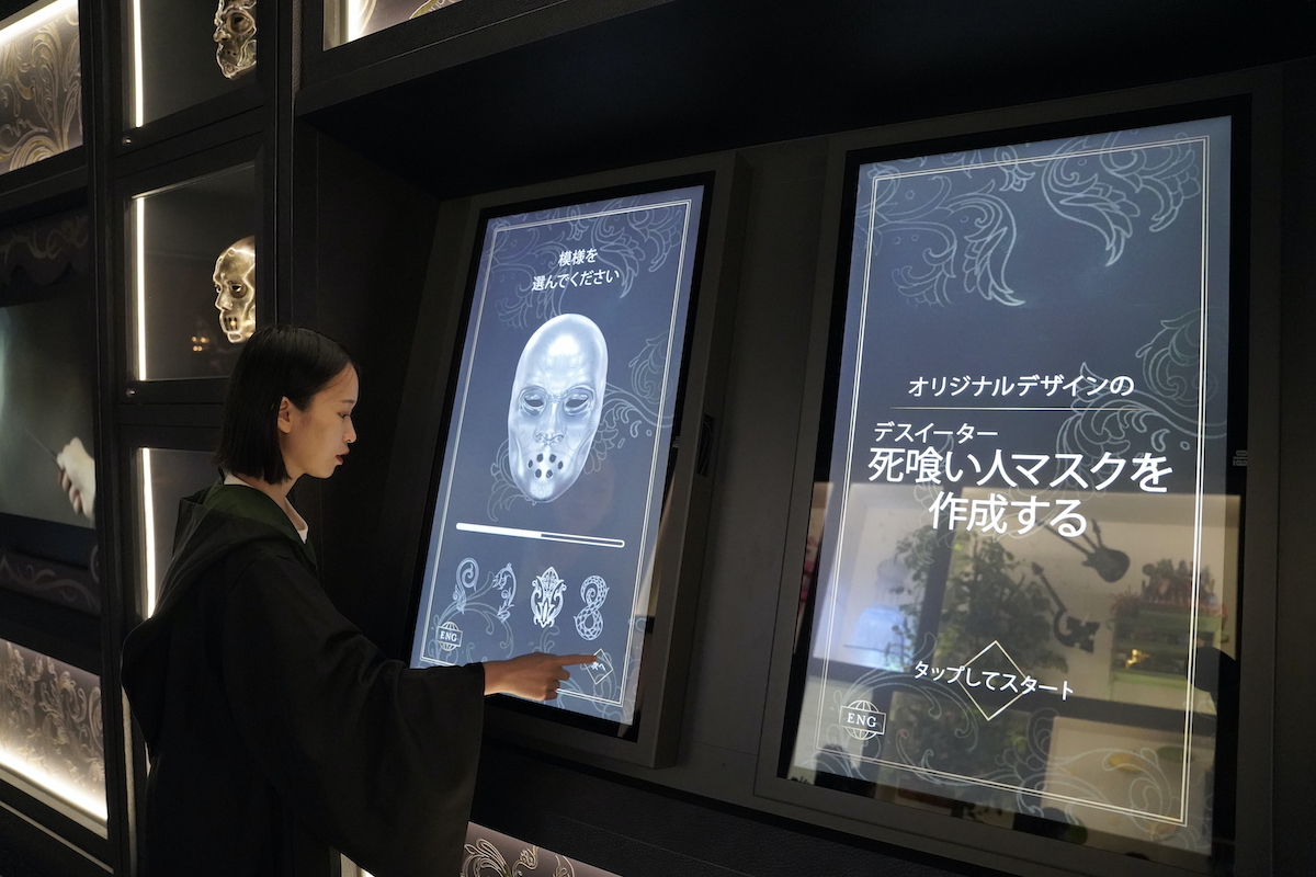 デスイーターのマスクをつくれるインタラクティブな体験コーナーにも注目。ゲストがパネル上で好みの型、色、表情、模様を選ぶと、頭上にオリジナルマスクが出現します。