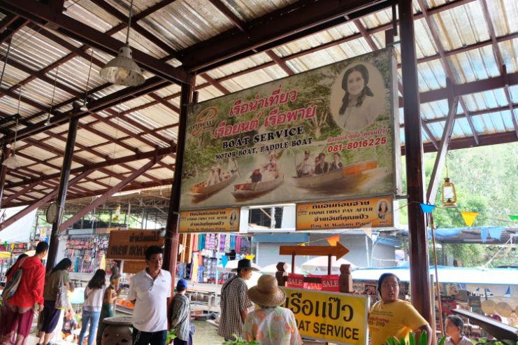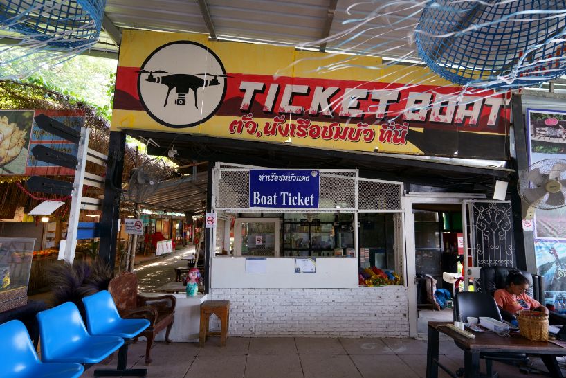 車を降りて入口を進むと大きな看板があり、ここで手漕ぎボートかエンジン付きボートか自分の乗りたいボートの希望を伝えて料金を支払います。料金は手漕ぎボートB400~、エンジン付きボートB800~※現金のみ。(それぞれ1時間程度)。