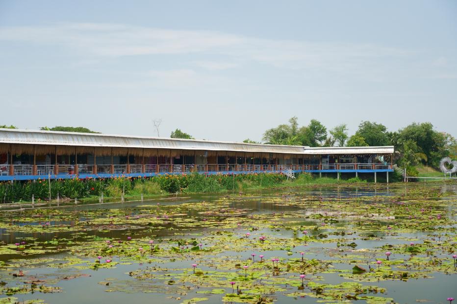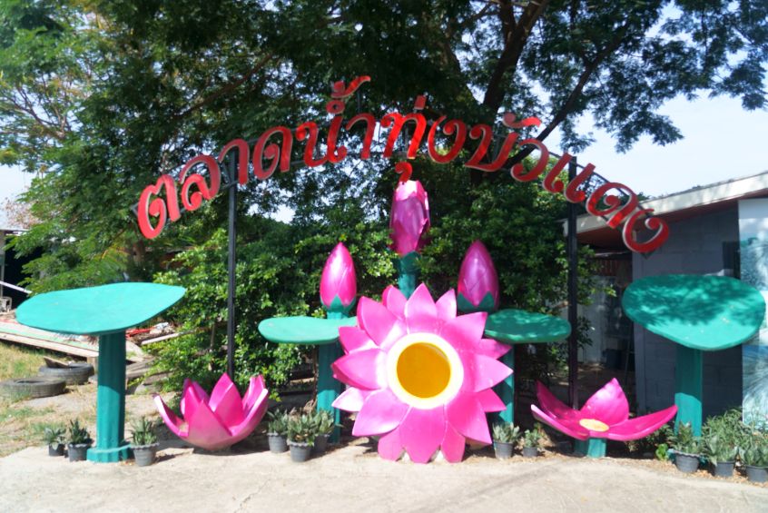 続いてご紹介するのはSNS映え抜群のNEWスポット、「レッドロータス水上マーケット」です。ここはバンコク中心部から車で約1時間30分ほどのところにあります。アクセスが良いとは言えないのですが、SNSなどで最近すごく話題なスポットなんです。