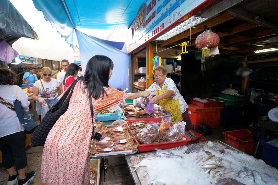 新鮮な野菜や、魚介類を売る店などが所狭しと並んでいます。