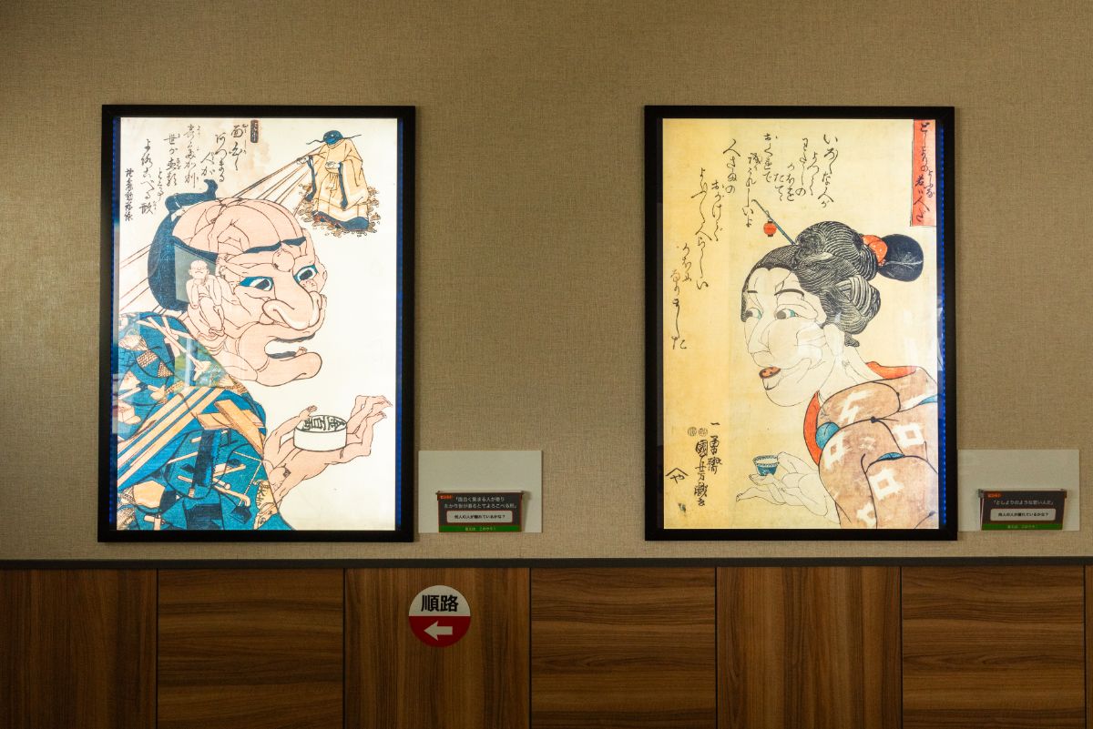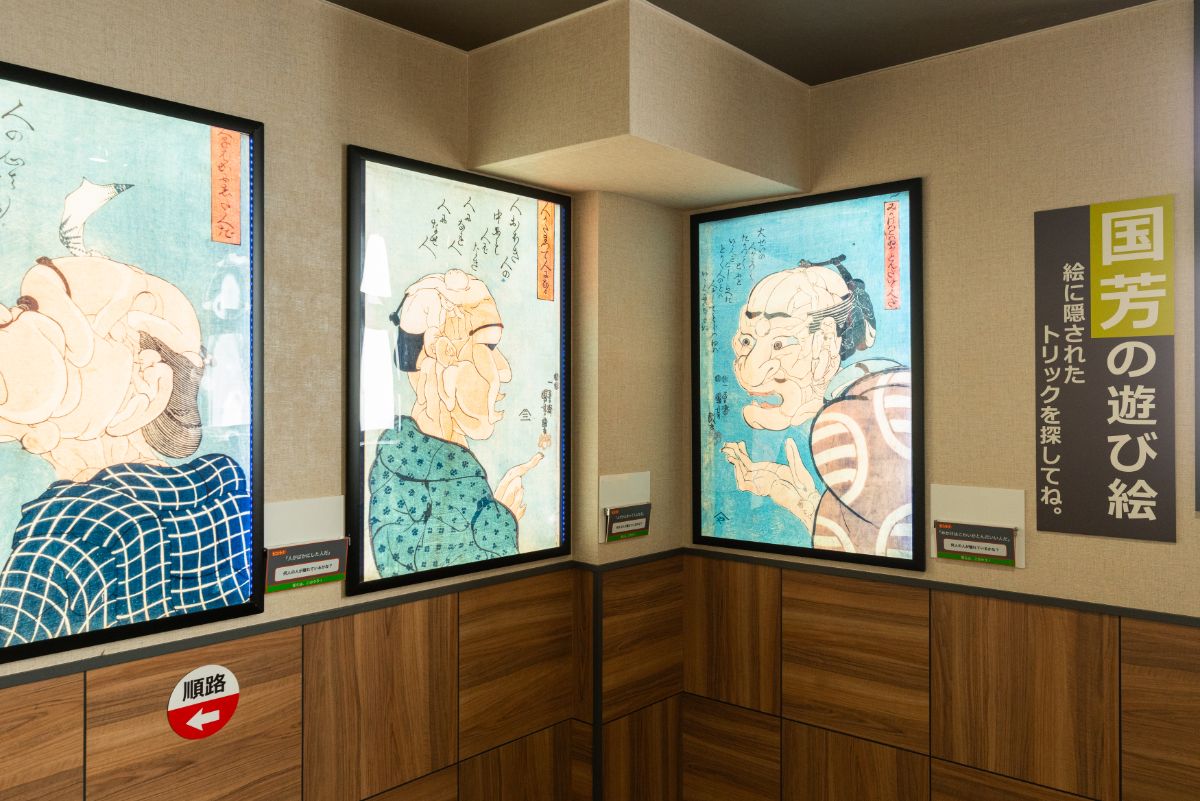 ここでは、江戸時代に庶民の間で流行した、絵から読み解くなぞなぞ「判じ絵」にチャレンジ。ずらりと並ぶ判じ絵は圧巻で、訪れた人々は絵の前で立ち止まり、なぞを解き合っていました。