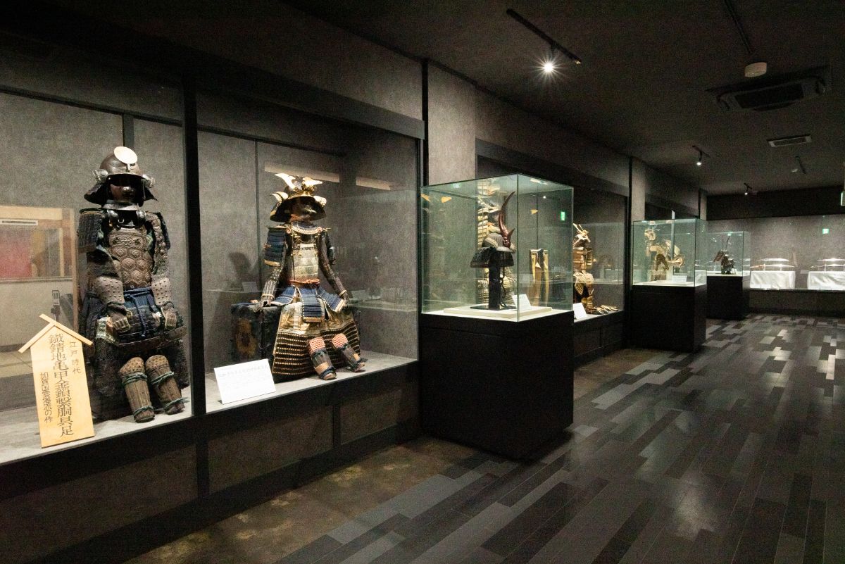 重厚な雰囲気が漂う展示室内には、甲冑武具や日本刀がズラリと並び、まるで美術館を訪れたかのような気持ちに。日常ではなかなか触れられない、貴重な日本の侍文化に出合うことができますよ。