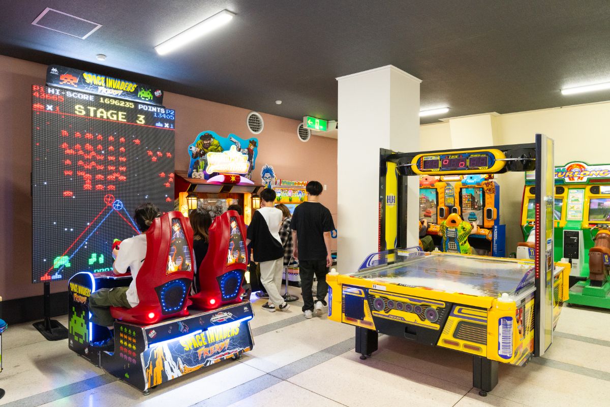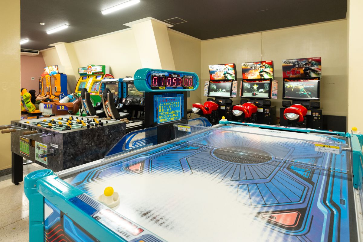 「熱海城」の地下には、入場者限定で遊べる無料のゲームコーナーが。いろいろな種類のゲームに加え、卓球台やキッズスペースも無料で使うことができ、誰もが楽しめる空間が広がっています。
