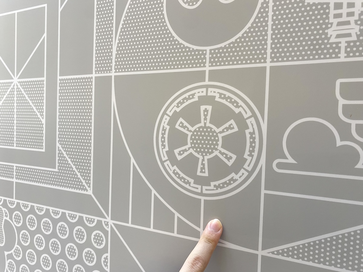店内のデザインは、ディズニーフラッグシップ東京がモチーフ。壁紙はディズニー、ピクサー、スター・ウォーズ、マーベルからそれぞれ象徴的なアイコンを組み合わせた特別なパターン柄。旗艦店のデザインをそのまま採用しているので、今後オープン予定の大阪や愛知などでも旗艦店の雰囲気を楽しめるのがうれしいポイントです。