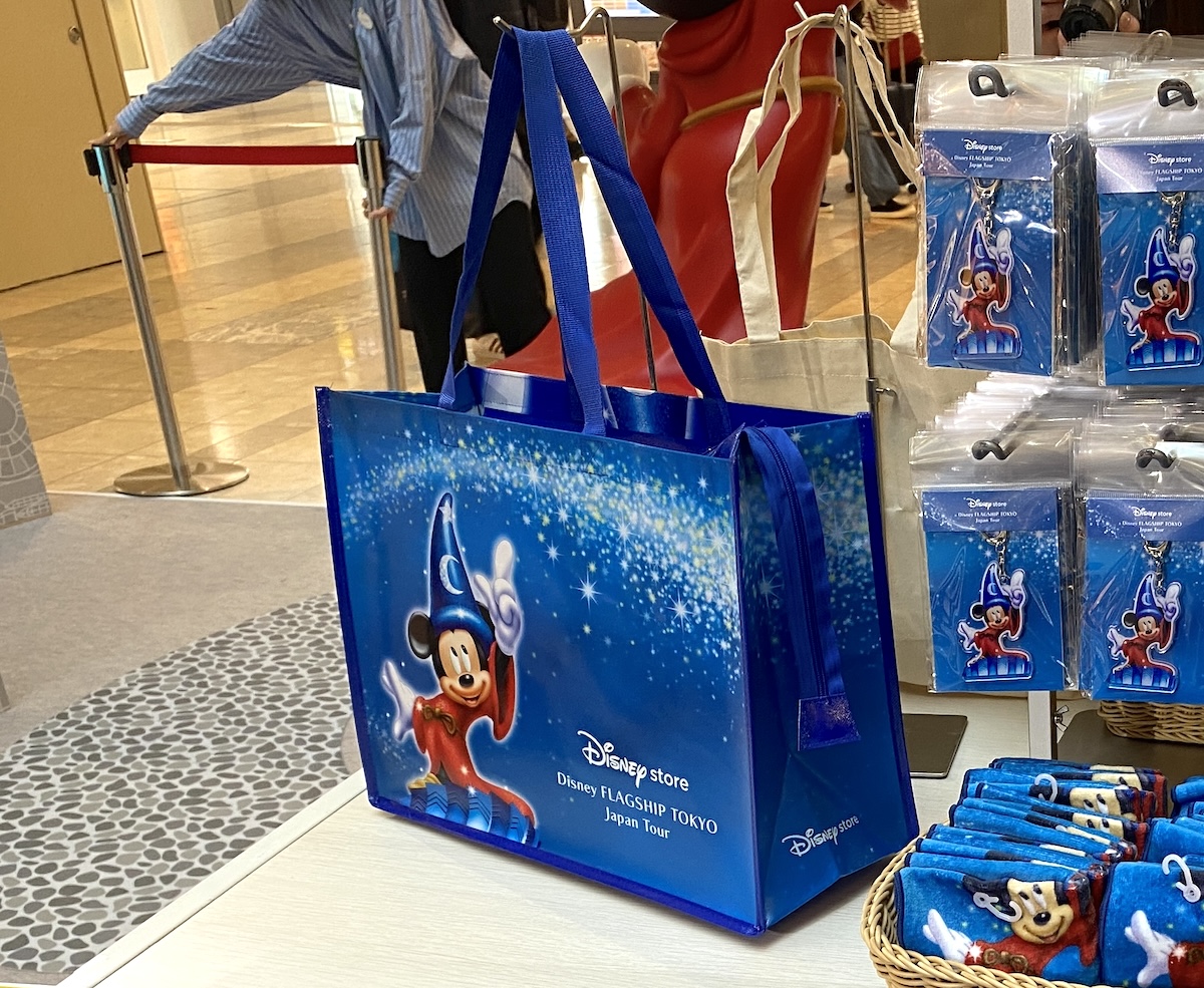 「魔法使いの弟子」に扮したミッキーマウスをデザインしたショッピングバッグやミニタオルなどをはじめ、“旅”をテーマにお揃いの帽子を身に着けたミッキーとミニーのぬいぐるみキーホルダーや「うるぽちゃちゃん」のぬいぐるみ、ご当地デザインのトートバッグ、キーチェーンといった、本イベントならではの特別感のあるアイテムを全14種類展開。