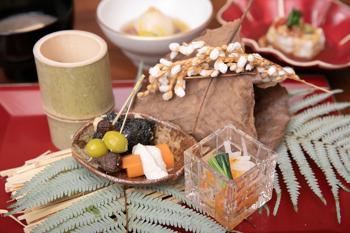 デザートには木津川市産のごぼうを使用した花びら餅をご用意。