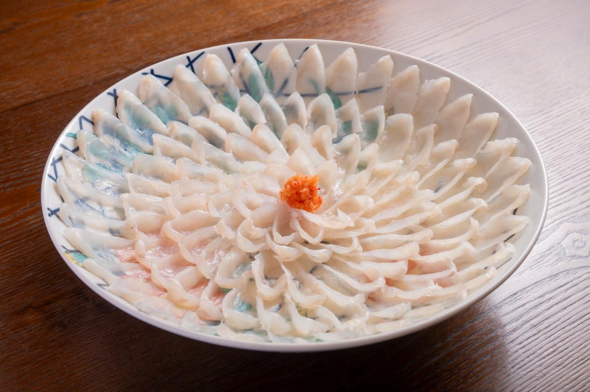 天然トラフグの会席コースのほか、手軽に味わえるようにと、てっさや唐揚げ、湯引きは、単品でも注文できます。職人技で透き通るような美しい薄造りに仕立てたてっさは、もっちりとした弾力と、噛むほどに凝縮されるうま味、上品な香りが楽しめる逸品。ランチに訪れるなら、てっさやご飯、味噌汁、小鉢などがセットで、トラフグの唐揚げやお鍋も楽しめる「福(とら)御膳」6600円(時価)もおすすめです。
