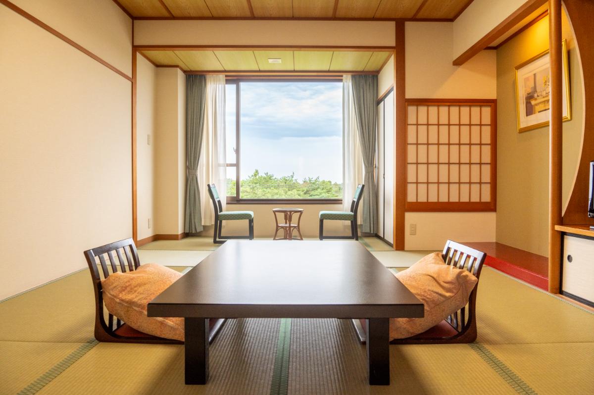 客室は10畳以上の和室20室、ツイン3室、特別室2室の計25室。松川浦を望む高台に立ち、窓から見える四季折々の潟湖の景色に癒やされます。夕日や朝日に輝く松川浦の絶景もお楽しみに。