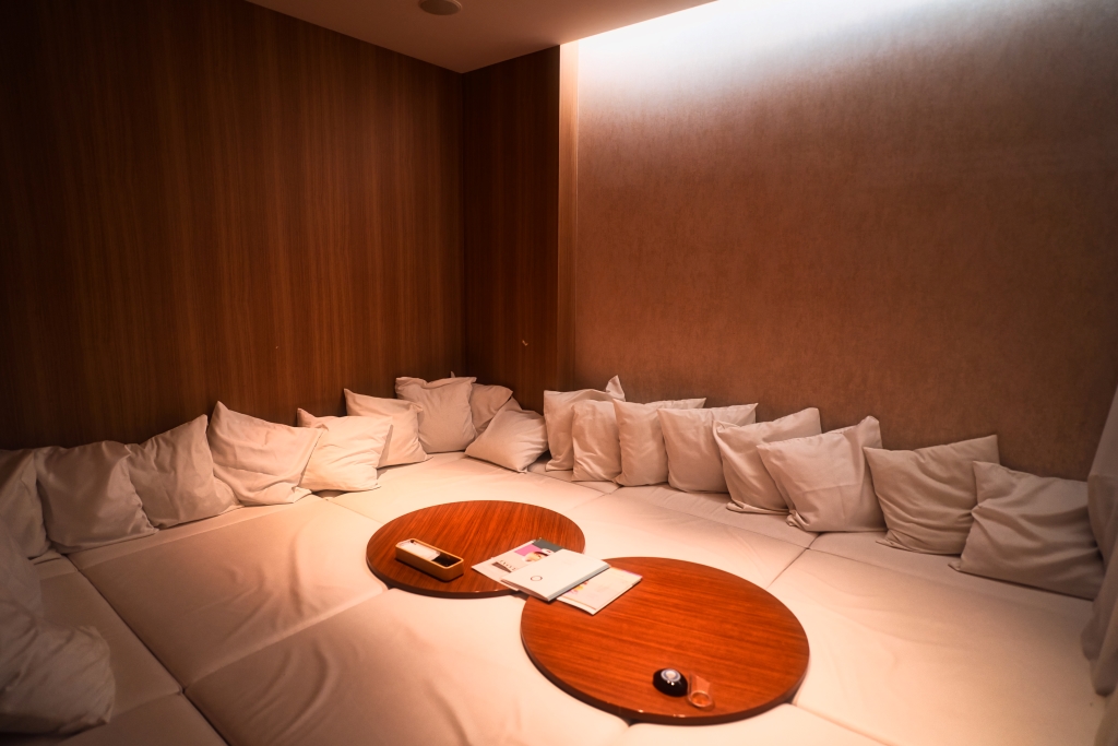 また、座り心地の良いソファと椅子で設えられたテーブル席、さらに奥には個室の小上がり席(写真)と、柔らかなカーテンで仕切られたテーブル席があり、隠れ家のような雰囲気を醸し出しています。