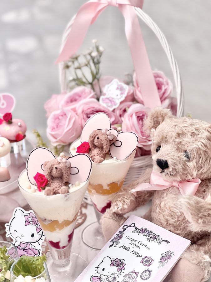 今回はロンドン郊外生まれのハローキティと、表参道生まれで「Ginger Garden AOYAMA」のアイコン「テディジンジャー」とのスペシャルコラボ。 ローズが散りばめられた、女の子の大好きと幸せがぎゅっと詰まったメニューになっています。
