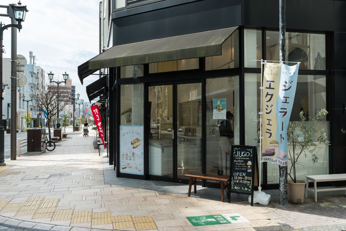 2023年9月にオープンした「SWEETS&GELATO JUGO」は、旬のフルーツを贅沢に使ったパフェやエクレアを楽しめる洋菓子店。JR静岡駅北口から歩いて約15分、さまざまな店舗が連なる七間町通り沿いに店を構えています。