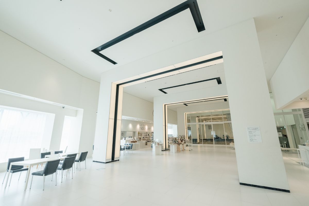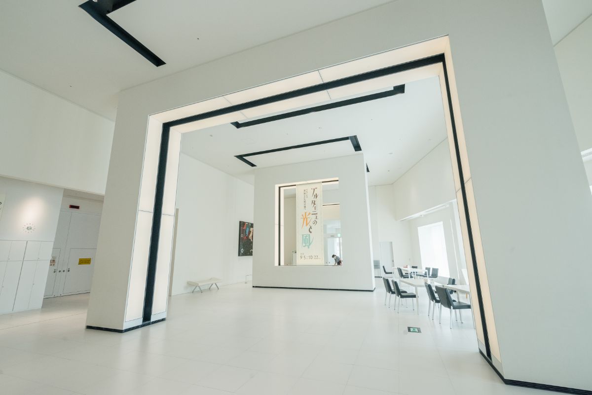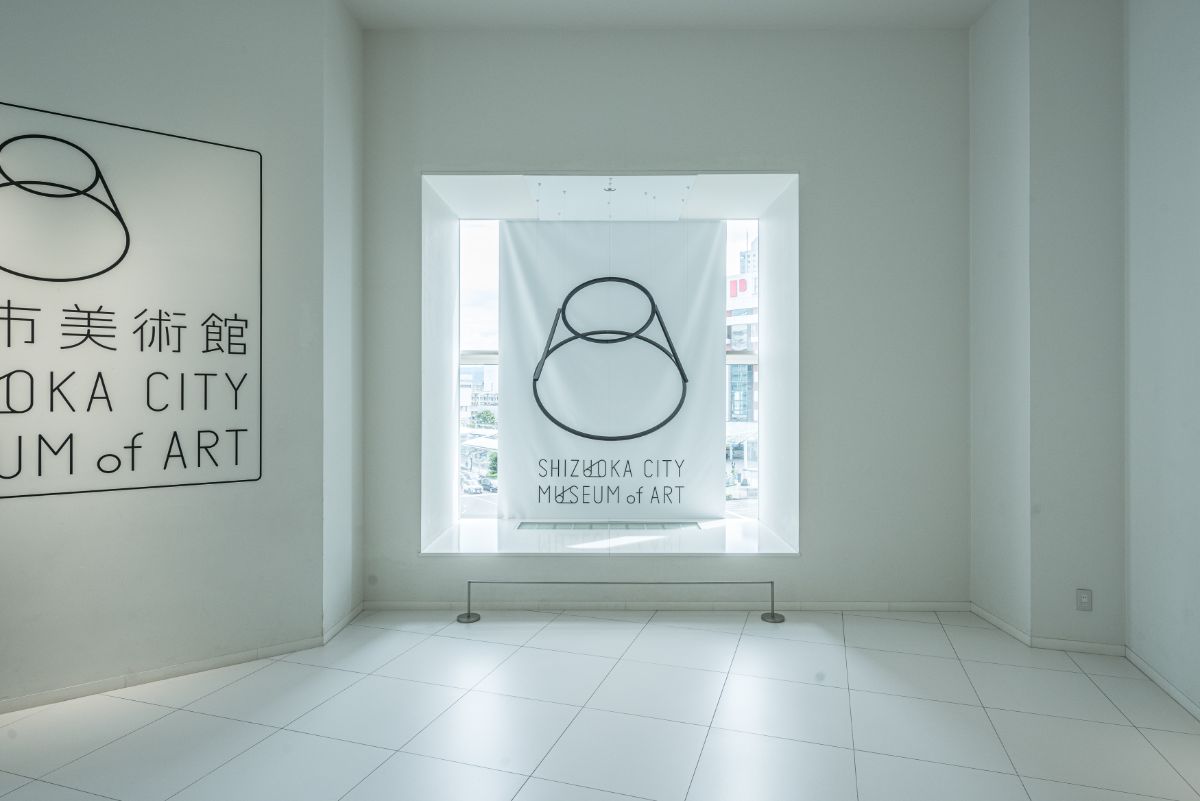 静岡市美術館のエントランスホールは、一面真っ白。何色にも染まることができ、どんな展示も引き立たせる空間です。