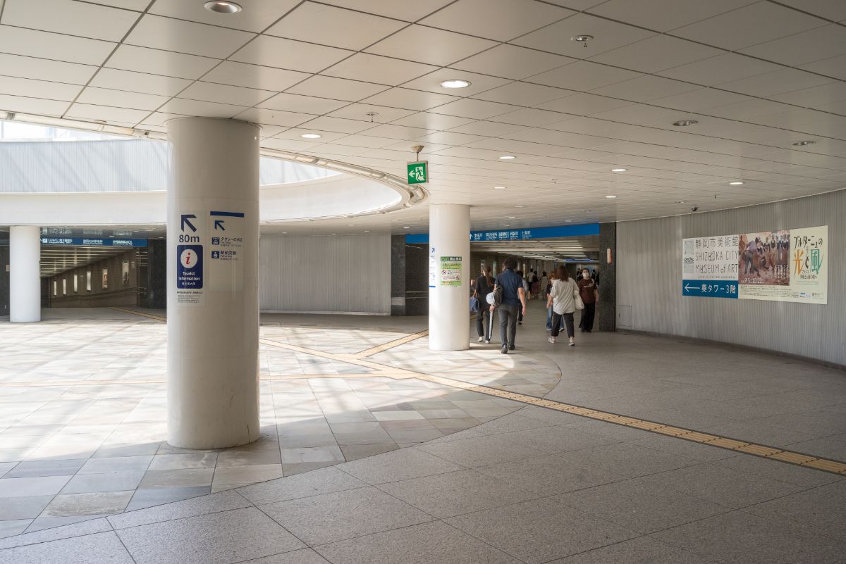 静岡の街を知らない方も分かりやすくたどり着けるのは、JR静岡駅から地下道を通るルート。