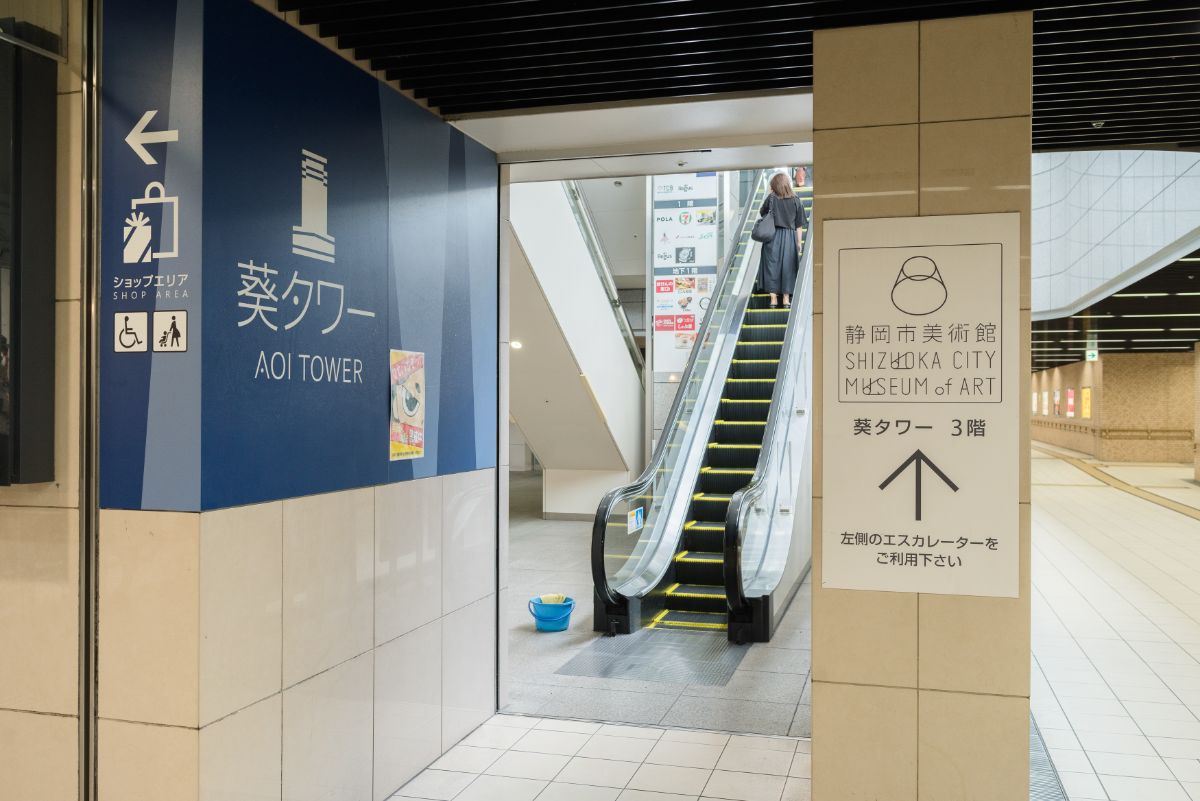 左に「葵タワー」の看板が見えたら、その奥にあるエレベーターで1階、2階、3階へと乗り継ぎます。