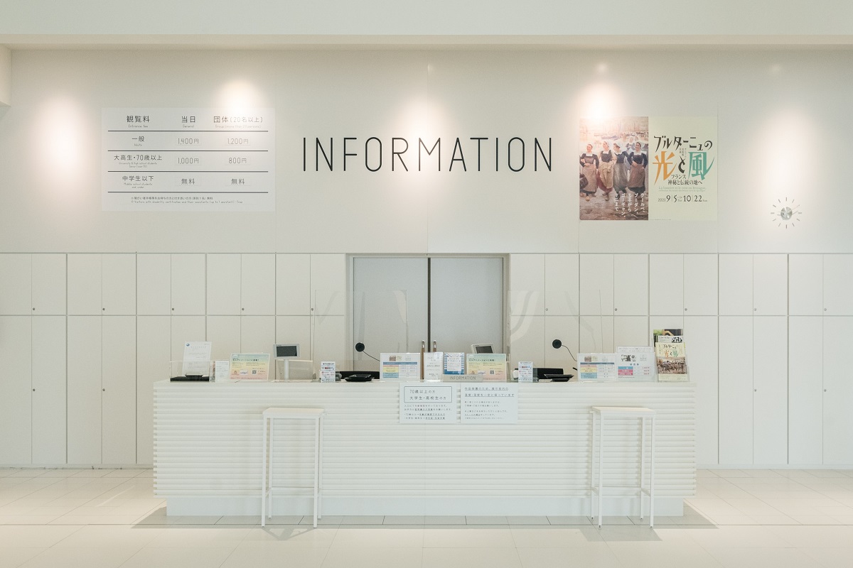 当日券の購入はインフォメーションで。カウンターの右が展覧スペースの入口になっています。