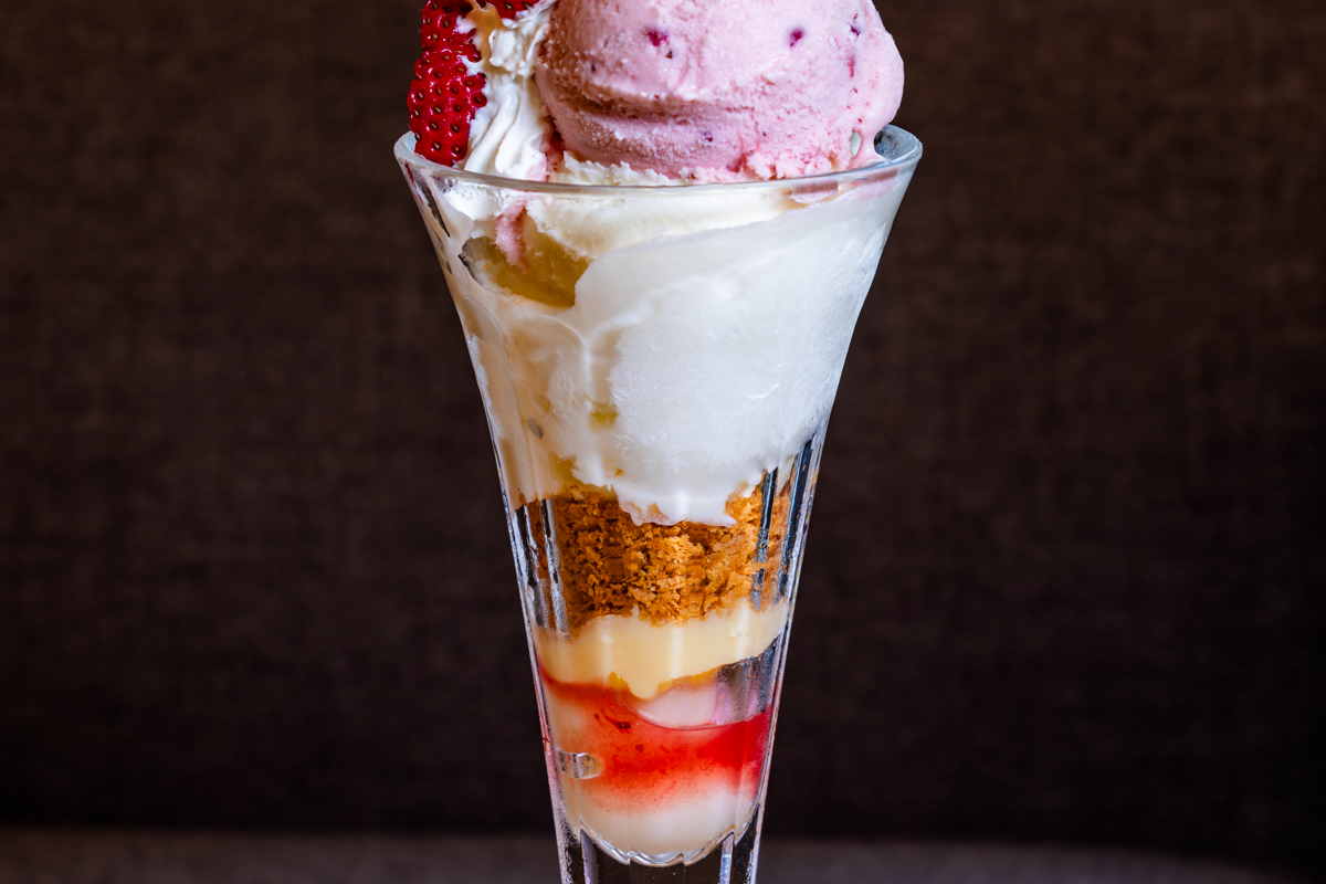 下方からスプーンですくいあげて味わうと、ミルクの優しい甘さとホワイトチョコの濃厚なコク、イチゴの爽やかな酸味が口の中で溶け合い、何とも幸せな気分に。