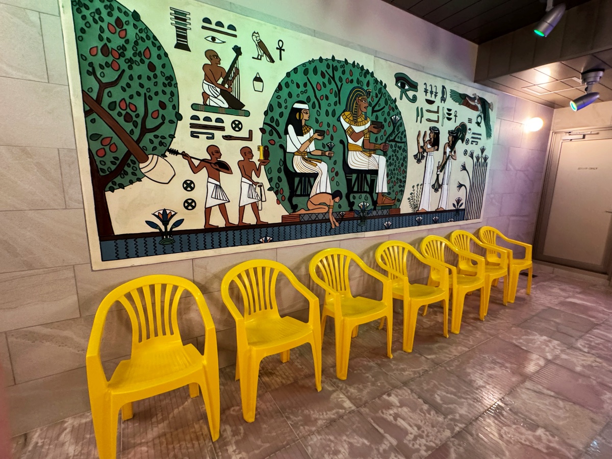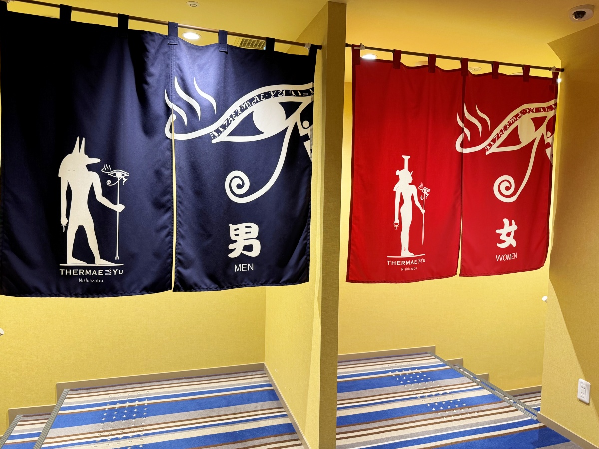 館内の随所で観ることができる古代エジプト風の壁画は、エジプト人アーティストが「テルマー湯 西麻布」のために描き下ろしたものだそう。