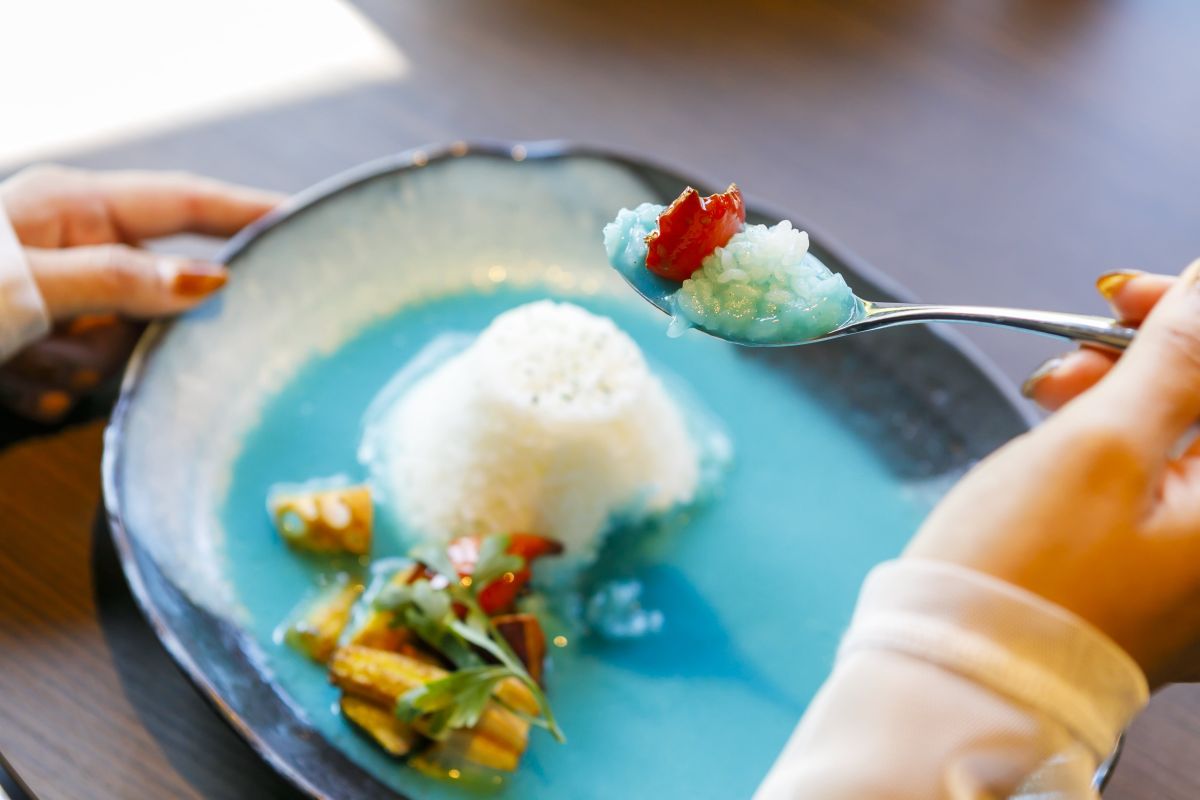 インパクト大!SNSでも話題になっている「青いフジヤマカレー」。カレーのルーの色といえば「茶色」が多いですが、ここでは「青い色」をしたカレーが味わえます。カレーの青さは、山梨ならではの富士山の山肌をイメージして作られたそうです。なぜ青色になるのか?は企業秘密!