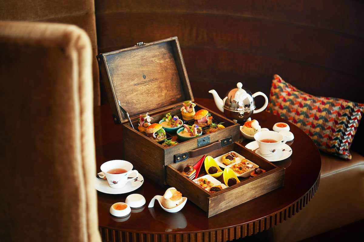 大きな窓がある開放的な空間が印象的な「ラウンジ3-60(らうんじ すりーしくすてぃ)」のアフタヌーンティーは、オリジナルの木箱がステキな演出です。