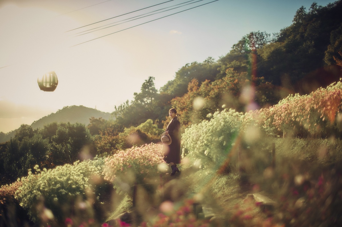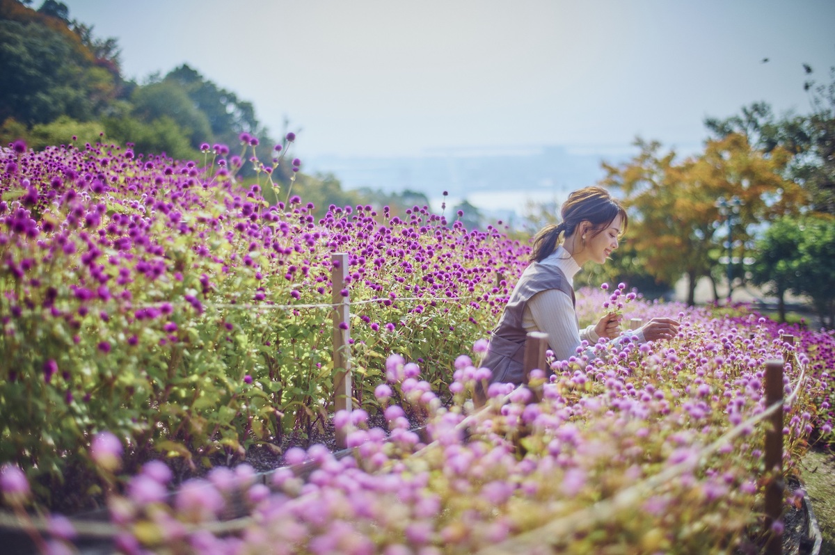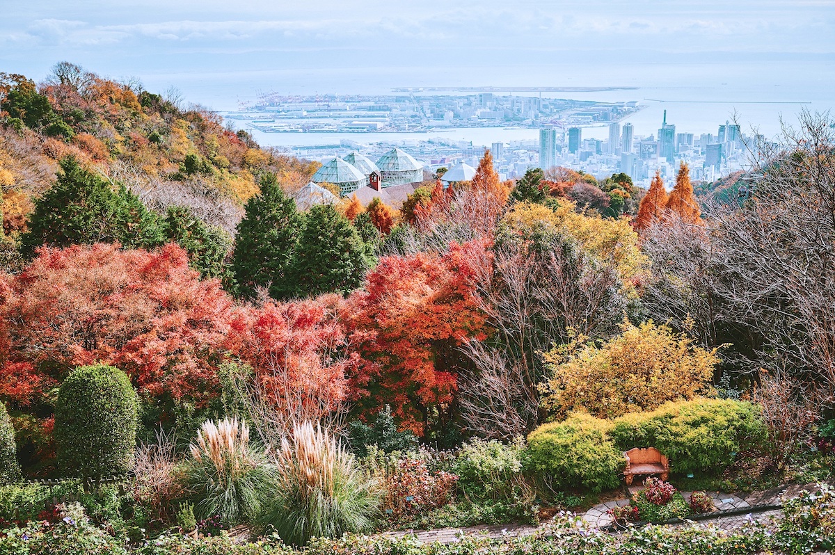 「神戸布引ハーブ園/ロープウェイ」は神戸の街並みが一望できるリゾート施設。穏やかな秋空の下、色鮮やかな花々やハーブに美しく彩られたガーデンは、お散歩にぴったりです。