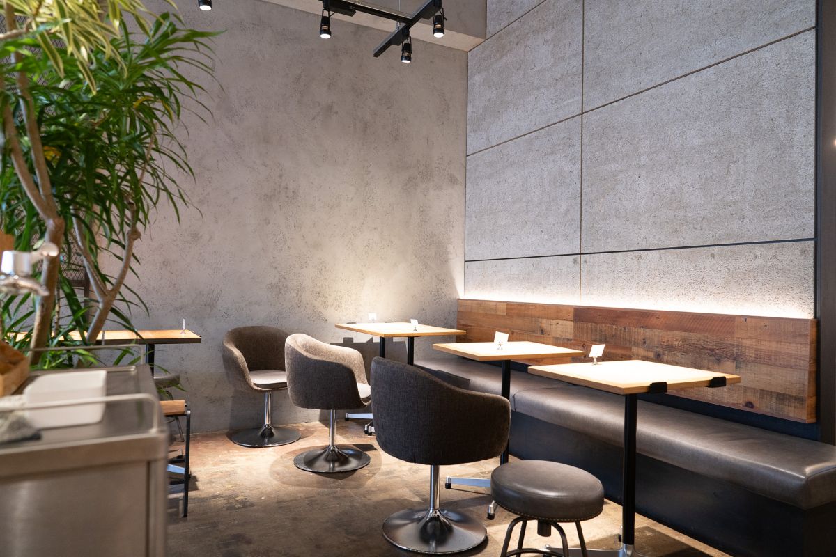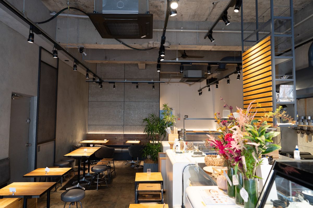 店内はグレーと木目を基調としたスタイリッシュな雰囲気。賑やかな戸越銀座通りに面したテラス席でゆったりと過ごすのもよさそう。お店のテーマは「小さな幸せをホットケーキにのせて」。前のお店を閉店したときに、多くの人から「体調を崩した時も、ペドラブランカのホットケーキは完食できる」「食べると幸せな気持ちになる」という声があって、「小さな幸せをホットケーキにのせて届けるという活動をしているのかもしれない」と気づいたそう。うれしいことがあったときや、少し残念だったことがあったときに食べる、日常に寄り添えるホットケーキでありたいという願いが込められています。