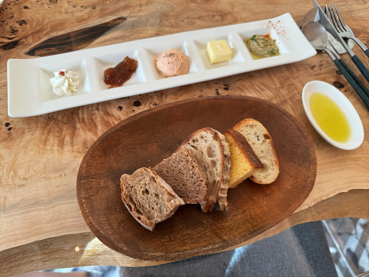 パンのお供となるスプレッドは、「月の雫の塩とバター 」「ファットリアビオさんのリコッタフレスカ 」「完熟いちじくのジャム」「石巻より銀鮭冷燻のリエット」「ババガヌーシュ(なすのパテ)」の5種に、「シチリア産オーガニックオリーブオイル」も。