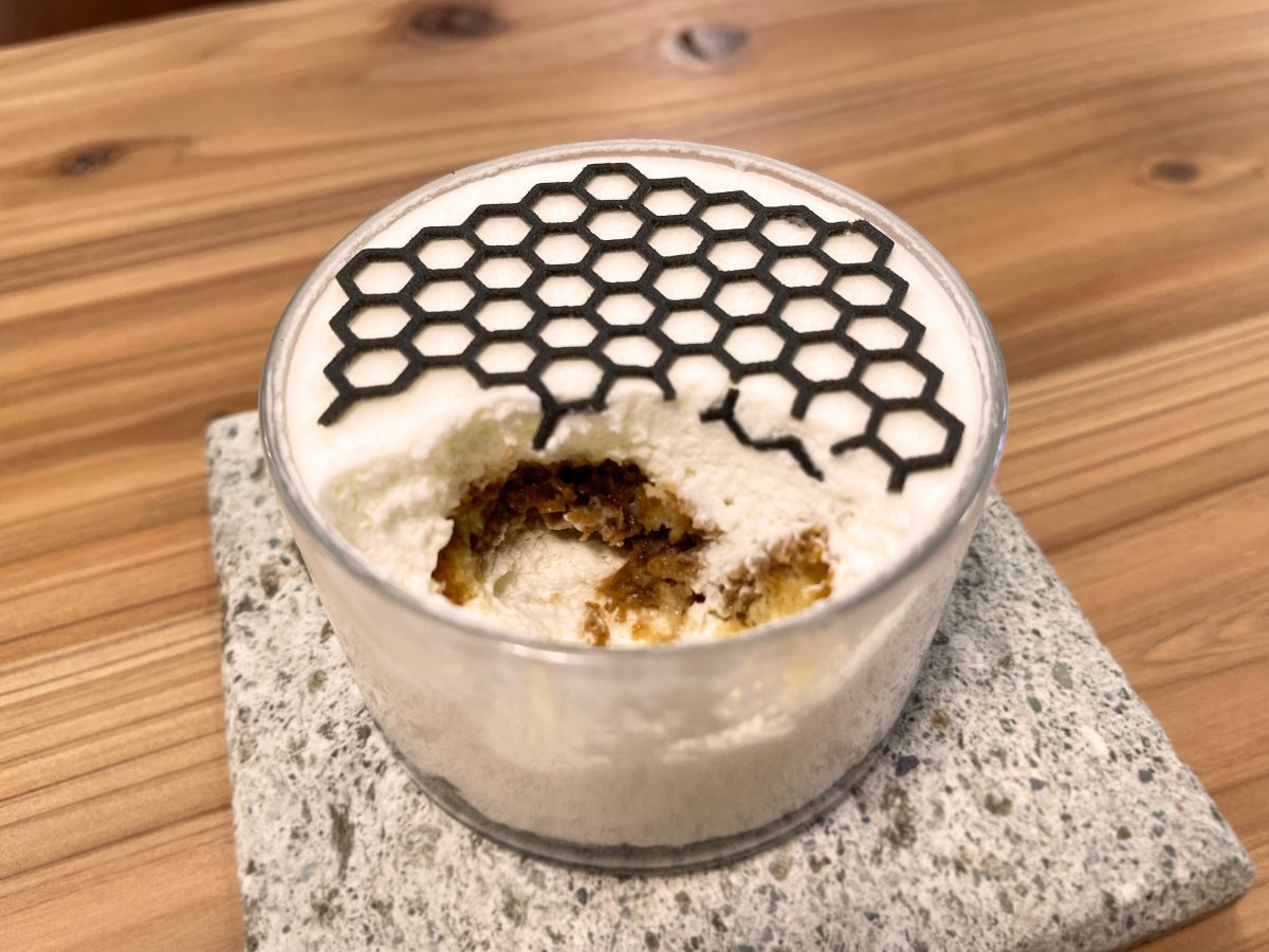 タルト生地のクッキーがトッピングされていて、まるで蜂の巣がのっているかのようなかわいいビジュアルです。