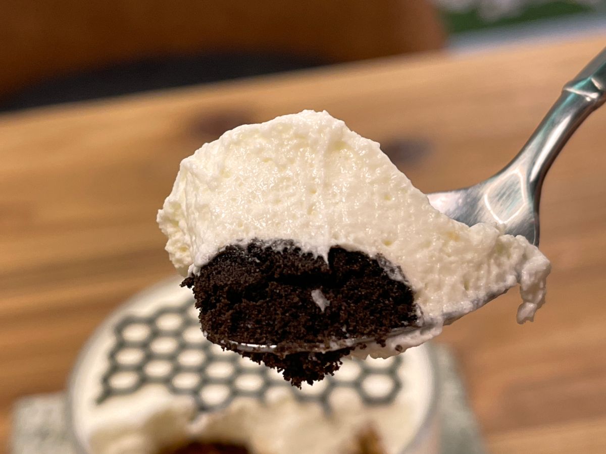 パウンドケーキに染み込んでいるエスプレッソのほろ苦さが、チョコサンドクッキーやマスカルポーネクリームの甘さを引き立てています。