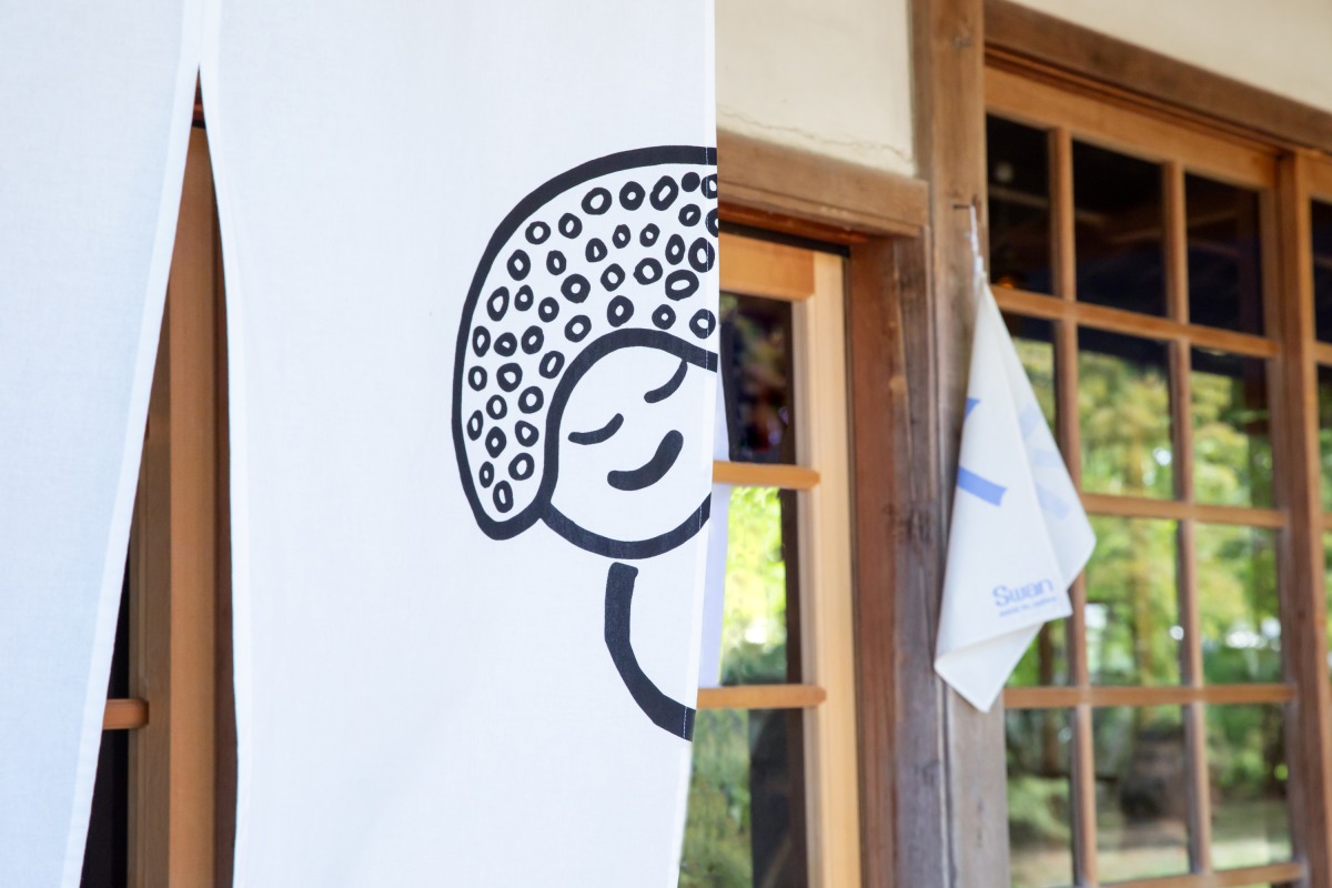 入口ではオーナー自ら描いたというオリジナルキャラクターのバガバンちゃんがお出迎え。螺髪がいかにもお寺らしくてかわいらしいですね。