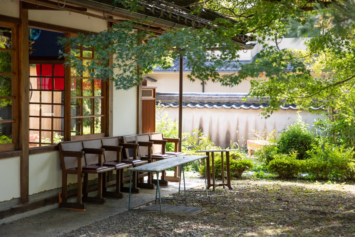 こちらはもともと境内の茶屋だったのですが、約5年前にのれんを下してからずっと閉業状態が続いていました。嵯峨大念仏狂言の演者でもあるオーナーが、清凉寺の住職からその話を聞き、カフェの開業を決意したのだそう。