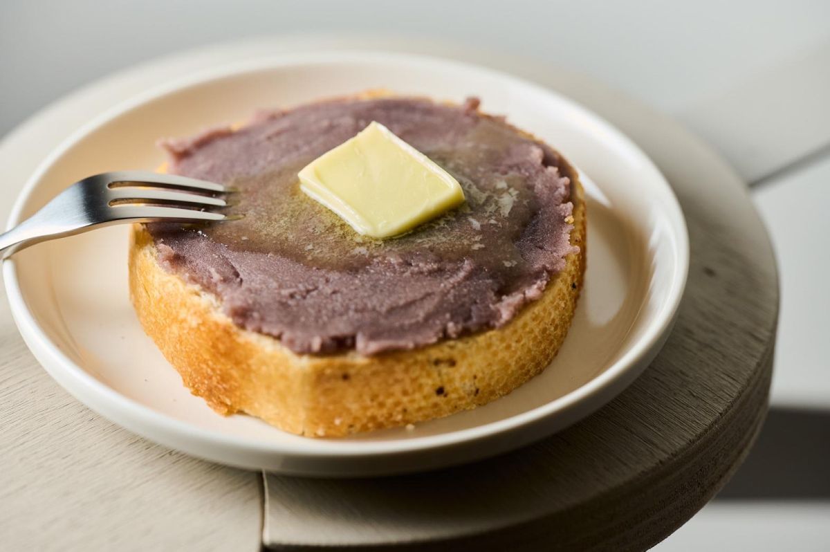 上品な甘さに仕上げられた“こし餡”をたっぷり塗って、仕上げにバターをのせた「あんバター」500円は、「MIKADOYA CAFE」の一押しスイーツ。