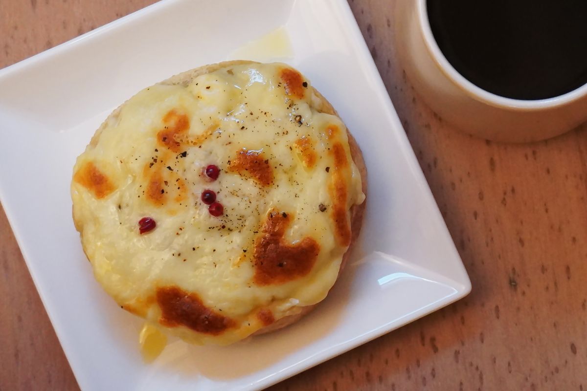 軽食メニューとしては「バジルポテトのオープンサンド」600円もおすすめ。 「MONTO-NOM」のパンの上に、オーガニックのバジルを利かせたハッシュドポテトとチーズをのせ、こんがり焼き上げたオープンサンドです。