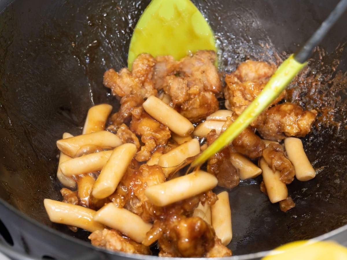 ハニー醤油の甘じょっぱい味付けが絶品!カリカリ衣のチキンとモチモチのトッポギ。さまざまな食感が楽しめるのもおいしさの秘密です。いつも定番の甘辛ヤンニョム タッカンジョンをオーダーしてしまう…というリピーターさんは、次回ぜひとも「ハニー醤油」にトライしてみて♪