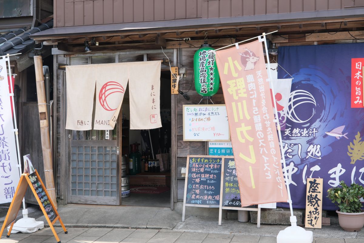 小野川沿いに立つ「だし処 随に(だしどころ まにまに)」は、昆布やトビウオなどからとった、こだわりのだしを使った料理が評判の店。