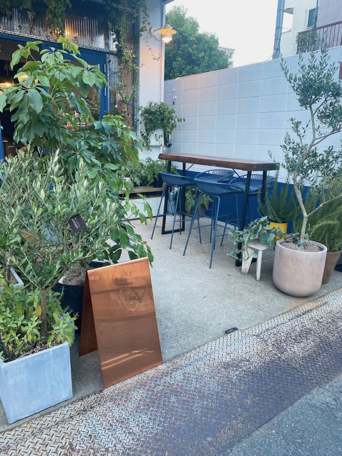 2つ目は開放感あふれるテラス席。インテリアもこだわっており、使用しているテーブルはスタッフの手作りだそう。また、テラス席ではペットと一緒にカフェタイムを満喫することもできますよ。