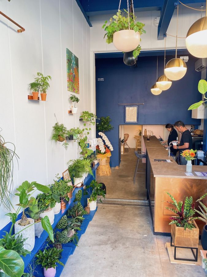 扉の向こうへ1歩足を踏み込むと、青と白のツートンカラーの空間とたくさんの植物たちがお出迎え。フランス語で“ちいさな森”という意味を持つ店名のとおり、緑に囲まれている店内。店内に設置されている植物のほとんどが購入可能で、グリーンショップとしての一面も。お好みのものがあれば自宅に連れて帰ってみては。